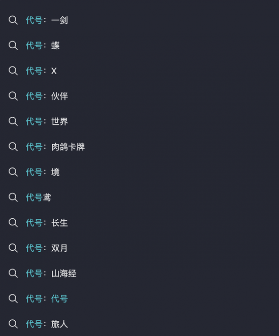 在游戲社區(qū)TapTap中搜索“代號(hào):…”關(guān)鍵詞,可發(fā)現(xiàn)大量未上線游戲正在使用此類(lèi)格式名稱(chēng)
